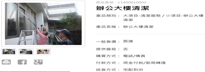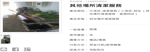 (三)商品貨號:L1400010003其他場所清潔服務
